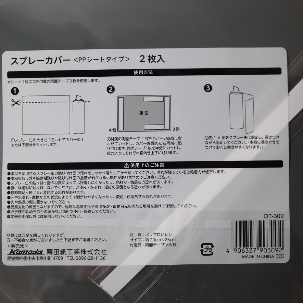 商品名スプレーカバー PPシートタイプ2P OT-309